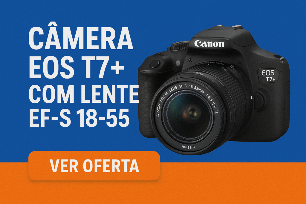 - Câmera DSLR T7+ com Sensor CMOS APS-C de 24.1 Megapixels