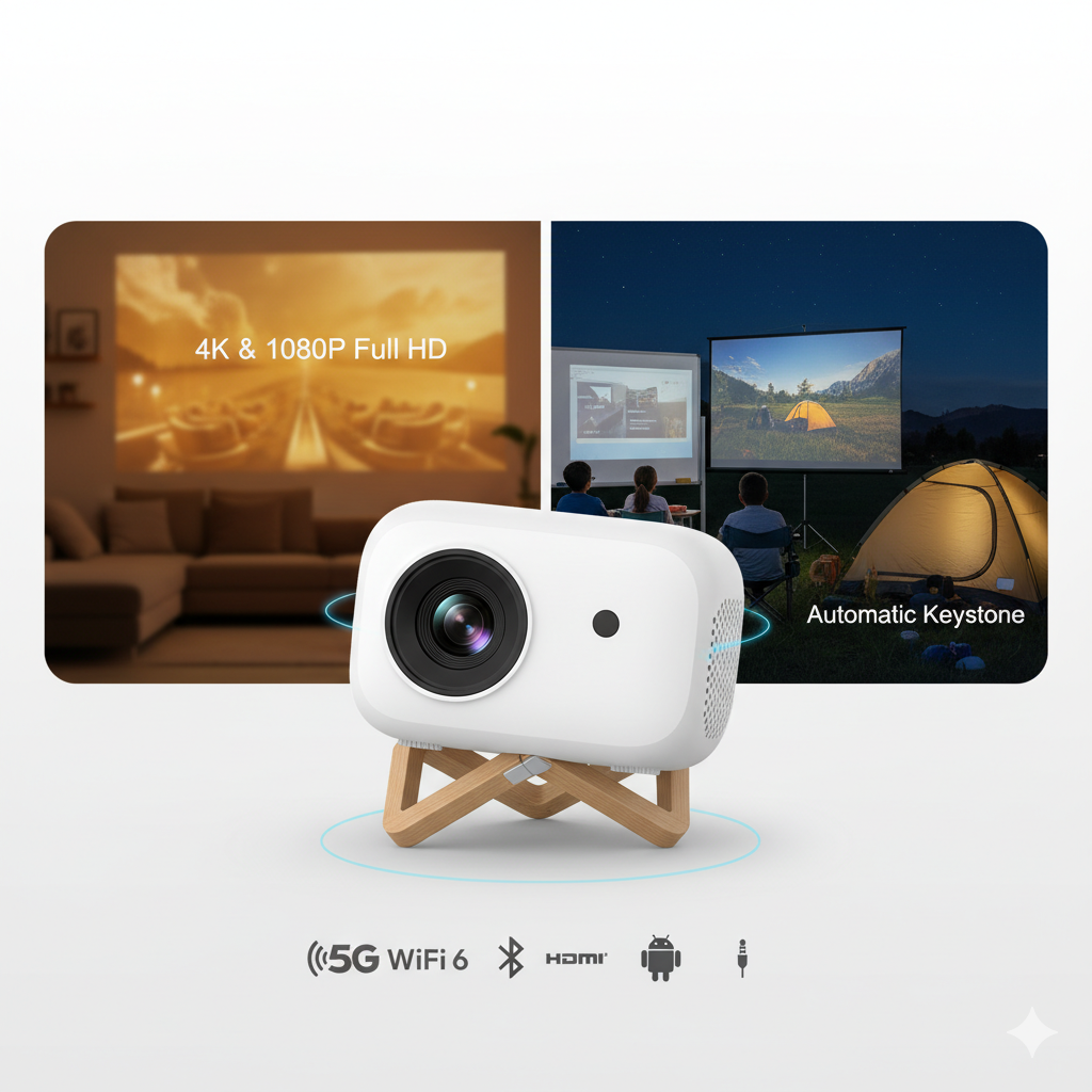 O mini projetor portátil 5G WiFi 6 é um dispositivo versátil que tem ganhado destaque no mercado de entretenimento moderno. Podemos defini-lo como uma inovação que permite a projeção de imagens e vídeos em diversos ambientes, desde salas de estar até ambientes externos como parques ou camping. Com um design compacto e leve, este projetor se destaca pela facilidade de transporte e instalação, tornando-se uma ferramenta prática para quem busca uma experiência audiovisual de qualidade em qualquer lugar.